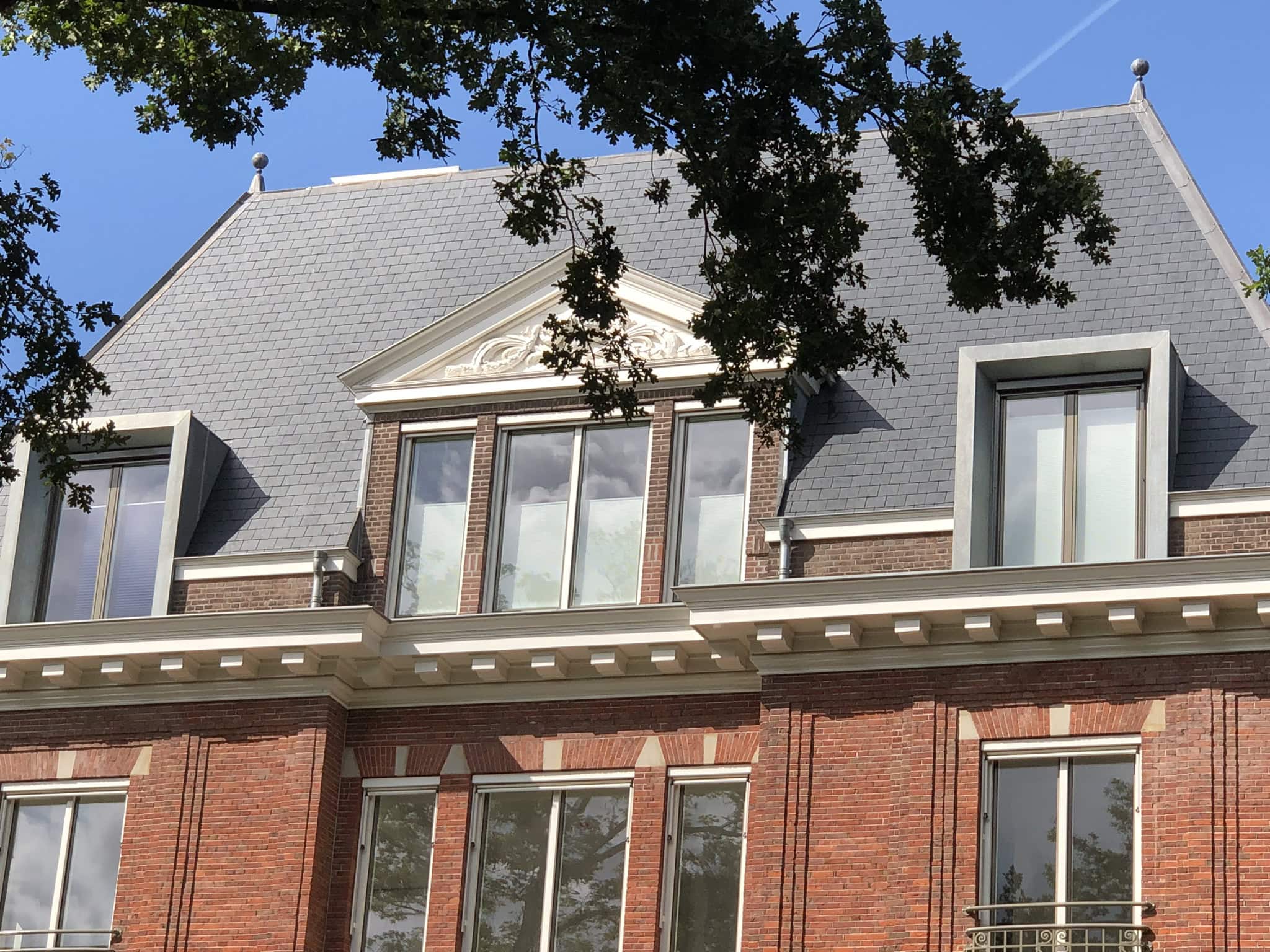 In opdracht van De Vries en Verburg hebben wij het dak van dit statige pand volledig gerenoveerd. Op het schuine gedeelte zijn natuurleien aangebracht (Spaanse Samaca 55 Primera leien), het platte gedeelte is voorzien van nieuwe dakbedekking en ook hebben wij het lood- en zinkwerk vervangen.